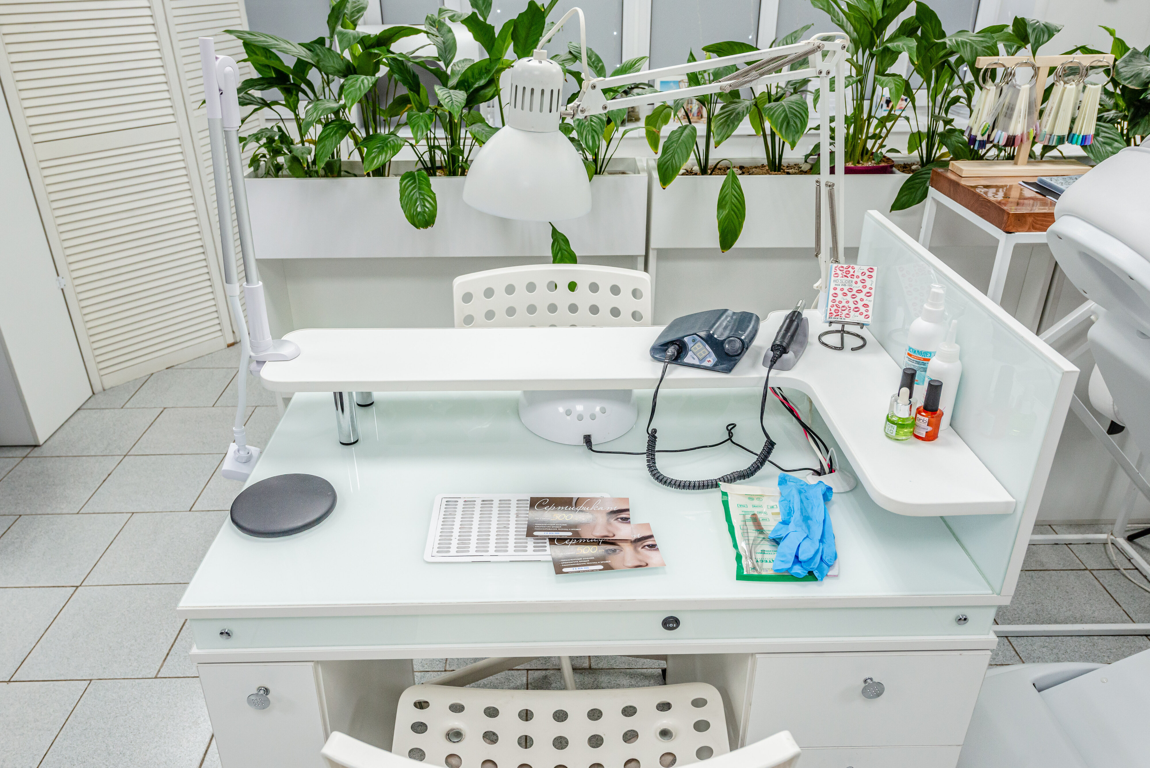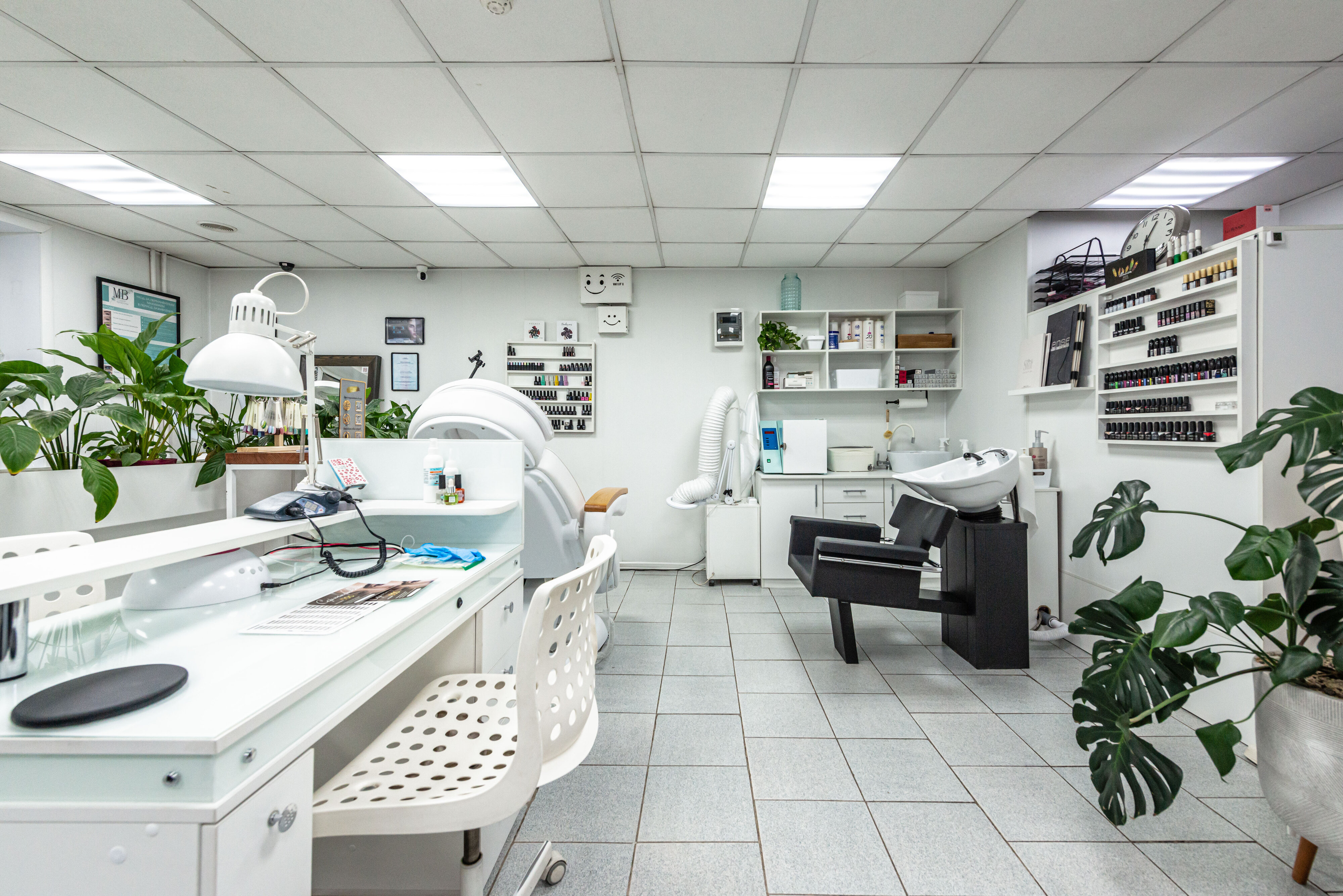 Также к услугам наших посетителей макияж, архитектура бровей, окрашивание ресниц, перманентный макияж, мелирование, тонирование, выпрямление, укладка, химическая завивка, биозавивка и маски для волос, вечерние и свадебные прически, свадебный макияж, мужские стрижки, стрижка бороды и усов, аппаратный и традиционный педикюр.